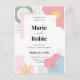 Utformningen har en levande och färgstark bakgrund i abstrakten, som gör ett påstående och anger tonen för ett livligt och glatt firande. Perfekt för par tittar att lägga lite roligt och modernitet till deras bröllop-festligheter. Texten är ren och elegant typsnitt, som står i skarp kontrast till den lekande bakgrunden, skapar inbjudan som är lätt att läsa medan den fortfarande är visuellt tilltalande.