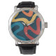 contemporary av abstrakt med färgad (blå, röd, gult, orange) vinkar dekoration på marin med blå bakgrund