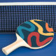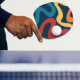 Contemporary av abstrakt med färgad (blå, röd, gult, orange) vinkar dekoration på marin med blå bakgrund
