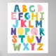 Detta färgstarka alfabet är en återgivning av ett målat och avskuret pappert kollage. Spelande nog för alla daghem eller barnrum med skuggor av rosa, blått, orange, gult, grönt och lila! Den här ABC-teckningen skulle också vara vacker och visas i ett klassrum.