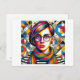 Höj stil med det här pulserande vykortet med ett ansikte som inte är gender-specifikt, popart-inspirerat. Den här uttryckliga designen sprider sig med ett kalejdoskop i färg och fångar individens innersta väsen och firar mångfalden.