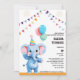 Färgfull Baby-elefant med babyskor med ballonger Inbjudningar