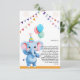 Färgfull Baby-elefant med babyskor med ballonger Tack Kort