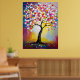 Färgfull blommar träd med en sjudande naturmålningsdesign. Med en blommande träd med levande blommor och en abstrakt bakgrund är den här grafiken en perfekt för att få en livfull och glad beröring i vilket rum som helst. Perfekt för natur älskare eller som ett unikt centrum för din dekoration.