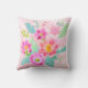 Kudden har en feminin och vacker färgbukett av blommor med olika utseende i rosa, orange, gult och vitt, som kompletteras med grönt och akvatiska löv på mjuk rosa.