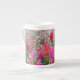 Njut av en kopp av kaffe, te eller hett choklad i söten, benet china mugg, som har en omslutningsbild av en sommarträdgård av färgfulla Snapdragons tillsammans med små Nicotiana-blommor. En underbar, blommigt design!