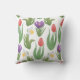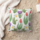 En färgstark illustration med vår blommor, inklusive tulpaner, daffodils och krokus, över en vit bakgrund. Den här designen finns även i andra färger i bakgrunden.