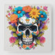 Färgfull Blommigt Skull Fyrkantig Klocka