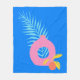 Den här vibrerande filten visar en djärv, modern abstrakt design med en ljusblå bakgrund, en rosa vas med en skärpedetalj, och tropiskt inspirerade löv och fruktaccenter. Perfekt för att lägga till ett propp av färg och konstnärligt lugn i vardagsrummet eller sovrummet. Den här mysiga filten kombinerar contemporary med funktionalitet. En idealisk gåva till konst älskare eller någon som uppskattar en unik hemdekoration med kreativ touch.