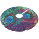 Vilken underbar Julgran-kjolt! En färgstark regnbåge av färg med lila, rosa och blå fjädrar mot gröntens bakgrund med glitter under träd. Den färgstarka designen gnistor till livet.