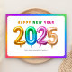 Färgfull brant Cute 2025-ballonger Gott nytt år Julkort