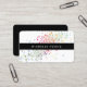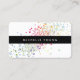 Ett regnkubikat stänk av färgfulla konfettpunkter skapar en spännande bakgrund för dessa moderna affärskort. Ditt namn eller ditt företag namn är helt enkelt formaterat i mitten på en solid svart remsa. En underbar design för konstnärer, fotografer, planerare i party, konstlärare, färgbilslärare, nagelsalonger, designers i insida, arrangörer i hemmet - eller något kreativ där färg eller ljus ingår i din varumärkesartikel. Den här designen ingår i en rad samordnade kontorsmateriel för att hjälpa till att märka ditt företag. Art och design © 1201AM KREATIV / www.1201am.com