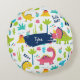 Färgfull Dinosaur Mönster med Kids Namn Rund Kudde