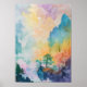 Denna levande och eterska teckning fångar upp ett surrealistiskt drömmarskum av abstrakt, skrumpna berg och delikat, bra-klädd träd som kommer från vibrerande, flerfärgade moln. Sammansättningen är lagrad med genomskinliga pastelltoner som sträcker sig från mjuka och ro-klämmor till rik-indigos, turkos och emerald grönt. Den nedre delen av bilden visar ett klick med tunna träd-silhuetter i djupblå och svart nyans, medan ett glansigt centrum för orange belyser mitten med en spricka av strålningsljus. Bakgrunden bleknar in i slät, flyter bergformer som löses upp i molnen och skapar en magisk och nästan världslig atmosfär. Scenen känns ogenomtränglig, som en vattenfärgad spegel där naturen blir en levande fantasi. Perfekt för dem som ritas till naturinspirerade teckningar med en surrealistisk och uppfinningsrik beröring.