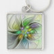 Färgfull Fantasy Flower Modern Abstrakt Fractal Fyrkantig Silverfärgad Nyckelring