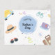 Detta vykort för Helgdag i Fars dag erbjuder en färgstark och glad design som hyllar pappor olika intressen och hobbieser överallt. Kortets framsida är försedd med lekfulla illustrationer som omfattar en klassisk bil, en snyggt fedora, ett par solglasögon, en mysigt tekopp och en resväska, som alla ställs mot en bakgrund av konfetti och strömmare. Centralt fokus är en blå cirkel med elegant skriven "Lycklig Fars dag" inuti. Denna utformning fångar kärnan i Fars dag - ett firande i hela sak som gör pappor speciellt och älskat. Kortets baksida är anpassade, vilket gör det möjligt för dig att skriva ett uppriktigt, personligt budskap som kommer att få pappa att känna sig verkligt berömt på sin speciella dag.