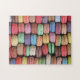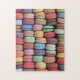 Dessa sötade konfektioner som är baserade på Fransk fylls med ett smaklöst centrum för att skapa en söt kaksmörgås. Den här staplade regnbågen i färg betyder olika smakliga smak. Bilden har en lätt "målad" känsla när man tittar närmare på den.