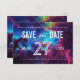 För paret vars kärlek-historia är skriven bland stjärnorna...Ett galaxistiskt temat bröllop spara datum-kort kommer säkert att fånga allas öga! Textinformation är anpassade och finns över en blankstegsbakgrund i lila, rosa, blått, gult och vitt