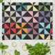 Ett mönster av geometriska pinhjul bildar en färg-liknande tapesi. Både modern och vintage samtidigt. Mångsidig och klassisk.
