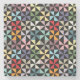 Ett mönster av geometriska pinhjul bildar en färg-liknande tapesi. Både modern och vintage samtidigt. Mångsidig och klassisk.