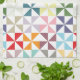 Ett mönster av geometriska pinhjul bildar en färg-liknande tapesi. Både modern och vintage samtidigt. Mångsidig och klassisk.