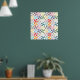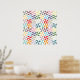 Ett mönster av geometriska pinhjul bildar en färg-liknande tapesi. Både modern och vintage samtidigt. Mångsidig och klassisk.