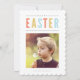 Ett nytt, modernt fotokort i Påsk med en palett i vår färg av Coral, gult och himlar blue och en målad rand som samordnar mönster baker.