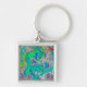 Färgfull grön Abstrakt i limmet Retro Liquid Art Fyrkantig Silverfärgad Nyckelring
