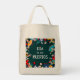 Tote-väskan visar skeletttecken ordnade i en cirkel. Omfattar manar, kvinnor, katter, hundar, djur, blommor, hjärtan och till och med en trumpet. Snygg, färglös, festlig mexikansk och hisnande helgdag design. Fira livet för älskade människor som har dött, Dia de los Muertos eller Day of the dead, i oktober/november runt Halloween. En del av en serie inbjudningar och leveranser från party.
