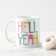 Roligt kaffe mugg med färgstarka ord. Typografisk design säger: Helvetet.