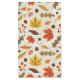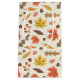Denna utformning visar ett livligt hösttemat mönster med en mängd färgstarka löv och akorner. Bakgrunden är en lätt grädd färg med subtila spekkler, som lägger till struktur och djup i designen. I mönster ingår löv i pulserande röda nyanser, gult och orange, tillsammans med andra löv i varma , muterade gröntar och mjuka nyp. Spridningen bland löven är små jordgubbar och grönsakskluster som ökar fallambitionen. Det arrangemanga är både nyanserat och balanserat och fångar höstsäsongens mysiga och festliga anda.