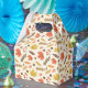 Denna utformning visar ett livligt hösttemat mönster med en mängd färgstarka löv och akorner. Bakgrunden är en lätt grädd färg med subtila spekkler, som lägger till struktur och djup i designen. I mönster ingår löv i pulserande röda nyanser, gult och orange, tillsammans med andra löv i varma , muterade gröntar och mjuka nyp. Spridningen bland löven är små jordgubbar och grönsakskluster som ökar fallambitionen. Det arrangemanga är både nyanserat och balanserat och fångar höstsäsongens mysiga och festliga anda.