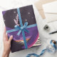 Färgfull illustration porträtt av söt val i rymden med måne och stjärnor. Djur från vilden hand plockade.