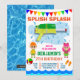 Förbluffa dina gäster med den här färgfulla födelsedagsfest inbjudan som har ett coola vatten-vapen och söt tecknad inslag med pulserande typografi på vit bakgrund. Lägg bara till din händelseinformation i den här mallen som är enkel att använda för att göra den till en inbjudan av typen en. Vänd kortet över för att visa ett blått vatten struktur på baksidan av kortet.