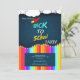 Färgpennan, allt i rad, och ett pappert flygplan på resande fot förskönar ord "back to school". En inbjudan till roligt att fira slutet av sommaren och början av ett nytt skolår.<a href='http://www.freepik.com/free-vector/pencils-and-chalkboard-background-back-to-school-concept_1105679.htm'>Designad av Freepik</a>). <br/>() Kortet är enkelt att anpassa med text, teckensnitt, teckensnitt, färg, pappra formalternativ och val av sex pappra typer.<br/>() Inte exakt vad du är tittar för? Alla våra produkter kan vara designad anpassningsbar för att uppfylla dina behov utan kostnad för extra.<br/>() Kontakta oss helt enkelt på heartfelthelper@gmail.com.<br/>() Samordna tillgängliga produkter: Fråga oss bara!
