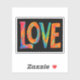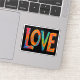 Lägg till en stänk av glädje i ditt liv med den här djärva och pulserande KÄRLEK-klistermärket. Med ord KÄRLEK i öga-fångande, regninspirerade nyanser utstrålar den värme, lycka och bra vibes. Perfekt för att dekorera bärbara datorer, vattenflaskor, bärbara datorer, telefonfodral med mera, det är en glad påminnelse att kärlek alltid vinner.