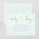 Fira din lilla pojke på vägen med dessa söta babyduschinbjudningar. Med färgstark konfektyr sprinklar du mot en pastellblå bakgrund. "Pojke" förekommer i folie faux guld i ett sött skript som är kopplat till ett hjärta. Anpassa enkelt dina detaljer i en enkel sans-serif-typografi.