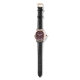 Denna kvinnoklocka har en modern utformning i mitten av århundradet av fem färgaders linjer, omväxlande vågrät och lodrät, och upprepar sig på ett svart plan. Om du tycker om designen men vill ha ett annat färg, säg mig.