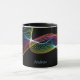 En intressant abstrakt utformning av flytande, färgstarka ljusstrålar ställs mot en dramatisk svart bakgrund på detta kaffe mugg. Ditt namn är i matchande blått i mitten. Unik och attraktiv!