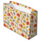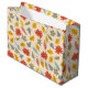 Den här utformningen visningar ett charmigt och dynamiskt falltemat mönster med en mängd färgstarka löv. Bakgrunden är en mjuk beige som gör att löven kan stå ut i rött, gult, orange, grönt och blek blått. Löven är uppdelade på ett lekfullt sätt, där varje löv visar olika former och vener som representerar olika arter av träd. Den övergripande utformningen är livlig och nyfiken och fångar höstsäsongens innersta väsen med en viss värme och glädje.