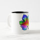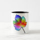 Ett dynamiskt löv med flera färgader ställs in mot en vit bakgrund och visar ett spektrum från blått till rött. Detaljrikedomen i löv har förstärkts av det kontrasterande färgen.