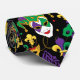 Mardi gras mönstrad slips med karnivalmasker från ansikte, fleur de lys motifs och jestermasker i lila, grönt och guld på svart