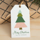 Moderna Juletiketter som illustrerar ett Julgran i skuggor av grönt och rosa. "God jul" visas i ett skript med visuell grönt med din familj namn som visas nedan. Märkrn för gåvor från Julgran återgår till visningen av en rosa som har betalat mönster.