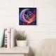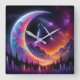 Färgfull nattlinda himmel Varg, halvmåns måne Fyrkantig Klocka