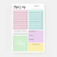 Färgfullt organiserat anteckningsblock efter dagen med ditt namn i ett penselskript, för att göra listor, vattendroppar som ska fyllas i när du hydrerar hela dagen, ställe för att hoppa ned ditt dagliga måltider, avtalade tider att göra eller personer att kontakta och anteckningar. Personlig anteckningsblocket efter dagen i en design med flera färg.
