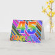 Framsidan av detta pulserande, roligt och öga-gratulationskort har en färgstark, strimlad mönster, tillsammans med meddelandet "45 år gammal!" med en flerfärgad regnbåge som övertonande mönster. Insidan innehåller ett anpassningsbar hälsning-meddelande, eller så kan det kanske rensas och lämnas tomt om ett meddelande ska skrivas för hand i stället. Ett sådant hälsningskort skulle kanske kunna vara ett roligt för att fira någons fyrtiofemte födelsedag. [~Z0000351]