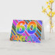 Framsidan av detta pulserande, öga-infångande och spännande gratulationskort för födelsedag har en färgstark mönster i rand, tillsammans med meddelandet "60 år gammal!" med en flerfärgad regnbåge som övertonande mönster. Insidan innehåller ett anpassat hälsning-meddelande, eller så kan det kanske rensas och lämnas tomt om ett meddelande ska skrivas för hand i stället. Ett hälsningskort som detta skulle kunna vara en roligt, ett lycklig-sätt att sända ett budskap till någon som firar sin sextioårsdag. [~Z0000351]