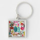 Färgfull Retro-Abstrakt, cirkulär och stjärnor Mön Fyrkantig Silverfärgad Nyckelring