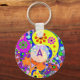 Färgfull Retro Blommigt Paisley Lila Initial Nyckelring
