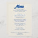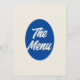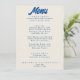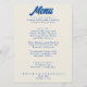 En färglös funky, modern, smart bröllop-middagsmeny. Med chicens malldesign beige vintage beige mjölkaktig bakgrund och blå typografi och vintage fet meny i blått. Perfekt och enkel redigerbar meny som passar för hela sviten.
